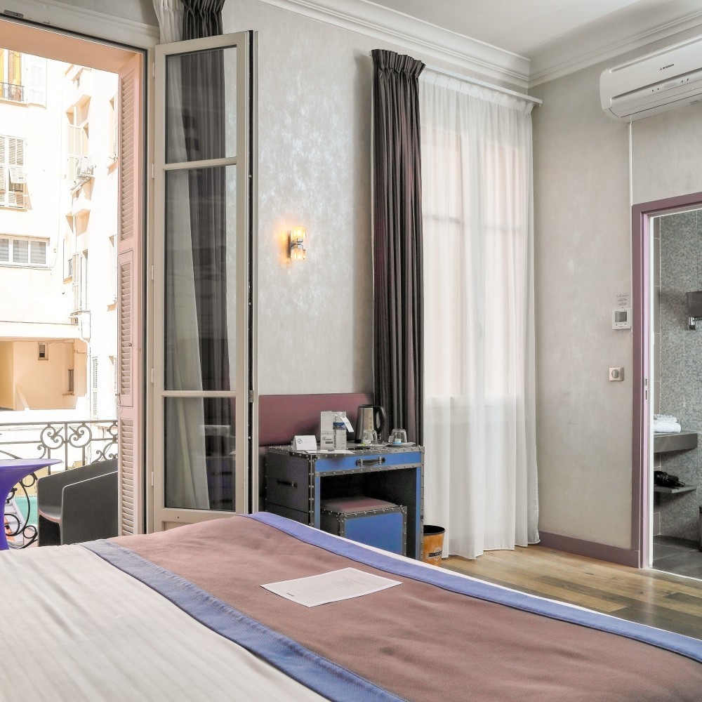 With a peaceful view over our garden, the Superior room combines comfort, vibrant colors and travel-inspired decor for a charming getaway in Nice.\nAll Superior rooms are poolside.